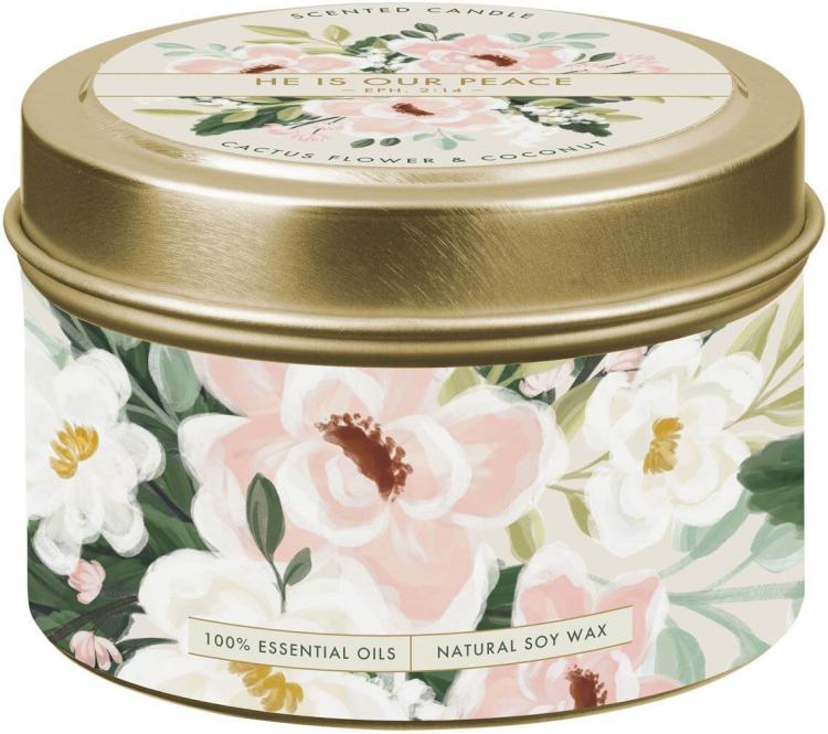 The He Is Our Peace Cactus Flower and Coconut Candle in a Tin is the perfect small gift to share a meaningful message of peace and comfort with the women in your life. This compact candle delivers a hope-filled message and soothing fragrance in a size that’s ideal for group gifting.