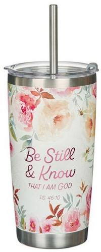 Be Still And Know Stainlesss Steel Tumbler With Straw Ps 46:10