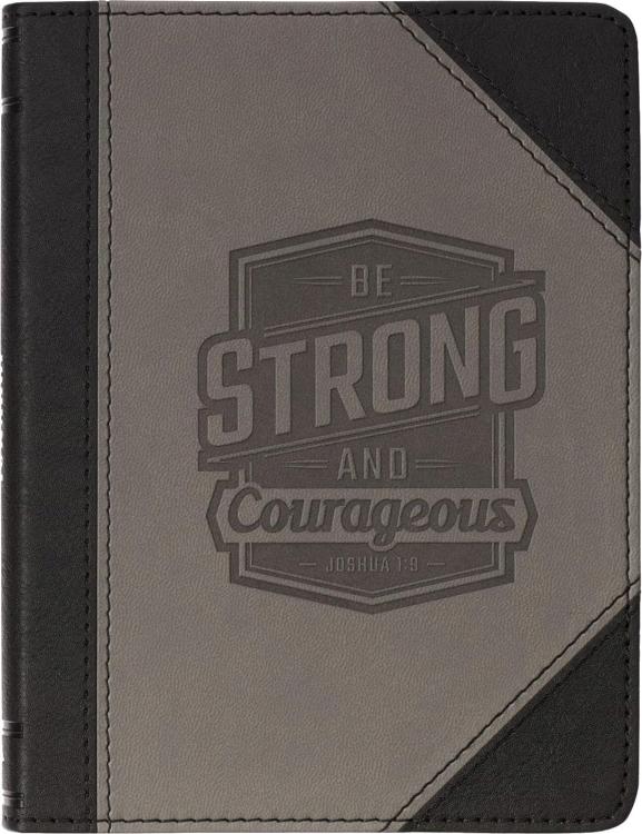 The Be Strong and Courageous Black and Gray Faux Leather Handy-sized Journal is created for men of faith who are responding to God’s powerful command to be strong and courageous in the face of adversity. They are stepping out in faith, knowing He promised to be with them every step of the way. Giving this journal will honor their commitment to heed God’s call.