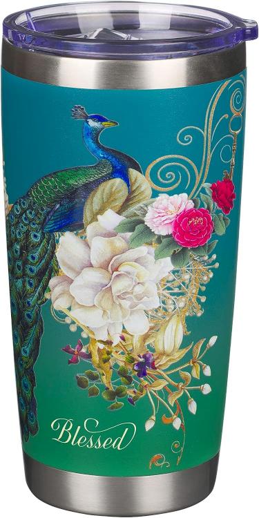 Blessed Blue Peacock Stainless Steel Travel Tumbler