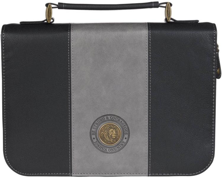 The bold message of the Be Strong and Courageous Gray and Black Faux Leather Classic Bible Cover will inspire men of all ages to stand firm in their faith, knowing God will be with them wherever He leads.