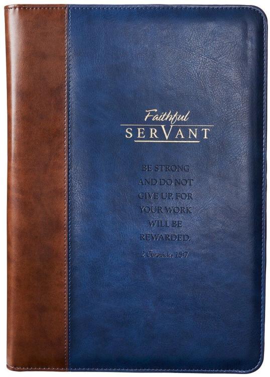 Faithful Servant 2 Chronicles 15:7 Zippered Brown Faux Leather Padfolio/Portfoli