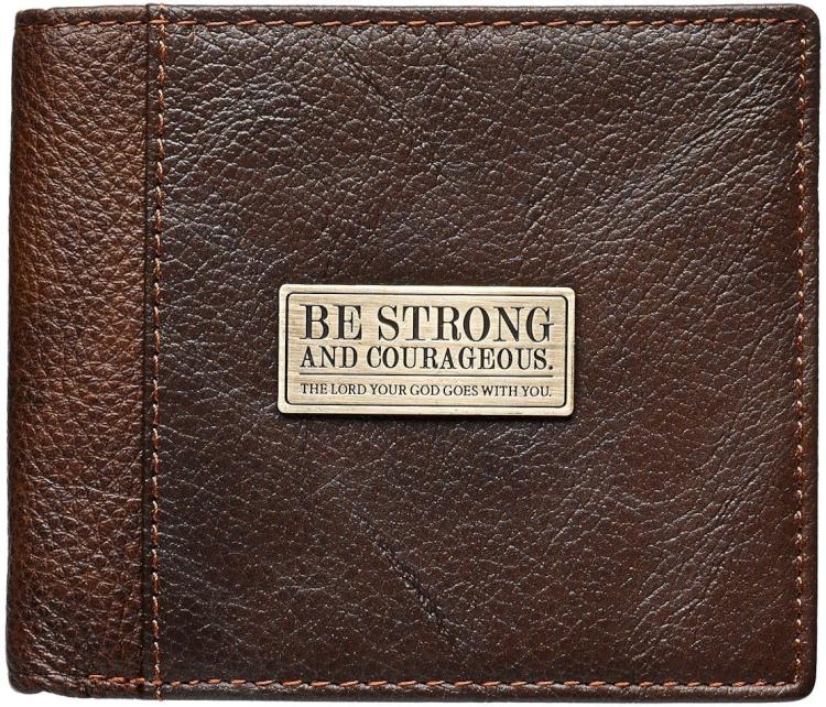 Encourage your husband or father with the special message carried by the Strong and Courageous Two-tone Brown Full Grain Leather Wallet.