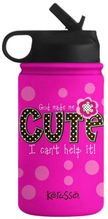 Send your cutie pie out to play with this sassy Cute 12 oz. Sports Bottle w/Straw by Kerusso Kidz in Pink. Keep her hydrated at home, school, and play. Meaningful designs by Kerusso Kidz share your child s love for Jesus with the world wherever they go.