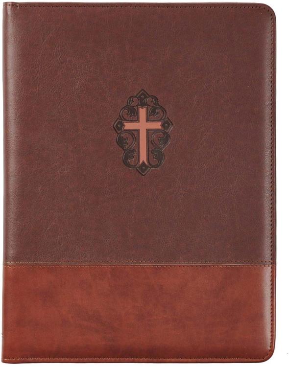 John 3:16 Cross Two-Tone Zippered Brown Faux Leather Padfolio/Portfolio Folder N