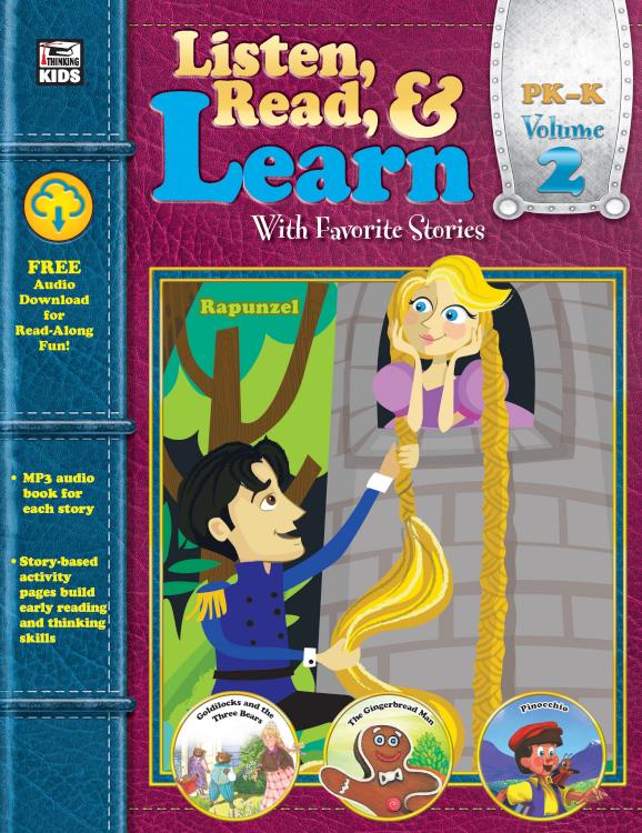 Listen, Read, & Learn fosters a love of reading while building early learning skills! Inside this volume, find four best-loved and delightfully illustrated children’s stories. A free MP3 audio file download makes it easy for your child to listen to the stories on any device, at home or on the go. Bonus activities that follow each story help your child understand story characters and events, learn new vocabulary words, practice letters and sounds, and more. These fun pages use favorite stories as a springboard for strengthening the early reading and thinking skills that will help your child succeed at school.
