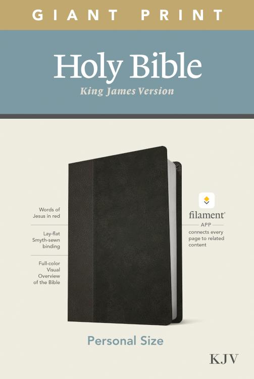 Bible Reading: IlluminatedThe new Tyndale KJV Personal Size Giant Print Bible, Filament-Enabled Edition, has readable text and an attractive layout in an easy-to-carry size. And while it has the same low price as basic, text-only Bibles, the KJV Personal Size Giant Print Bible offers much more. Along with the trusted and revered King James Version (KJV) text, it also includes the groundbreaking Filament Bible app, which turns this Bible into a powerful study and devotional experience, offering more to expand your mind and touch your heart than you can possibly hold in your hand-at no additional cost, no additional bulk or weight. Read this Bible on its own, or dig deeper with the Filament Bible app. Use your mobile phone or tablet to connect every page to a vast array of related content, including:25,000 study notes350+ videos40+ maps and infographics400+ profiles and articles1,500+ devotionalsLibrary of worship musicSpecial features include:New, easy-to-read page designsFilament content linked to every page!Readable large printHandy thin sizeWords of Jesus in redQuality lay-flat Smyth-sewn bindingTyndale Verse FinderPresentation pageRibbon markerGilded page edges