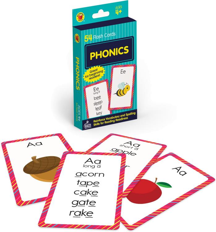 Brighter Child Phonics Flash Cards offer children a fun and easy way to practice their vowel sounds, consonants, and blending skills. Featuring 54 cards that help reinforce phonics, letter recognition, and reading readiness skills with full-color illustrations. A special card also offers creative game ideas designed to reinforce learning.