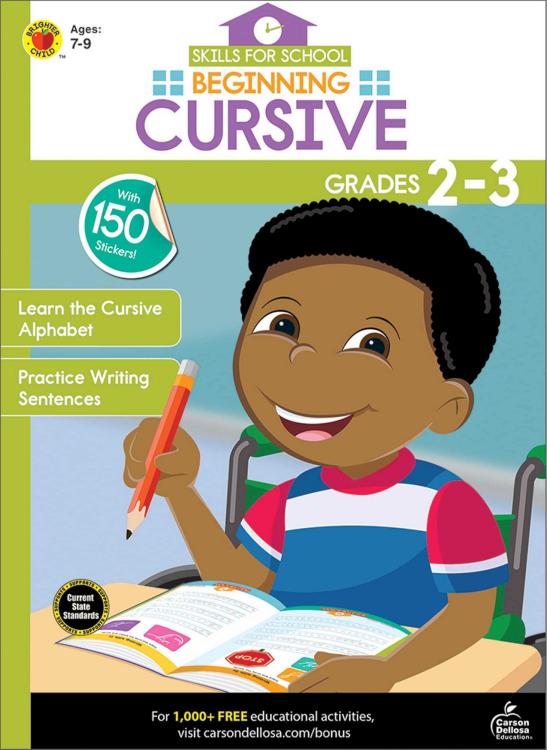 Help your child gain confidence in cursive writing with the easy-to-follow, 64-page Beginning Cursive for Grades 2-3. This title in the Skills for School series features engaging activities, practice pages for tracing and writing words, motivational stickers, and more. This book offers young learners a simple and fun way to grasp the fundamentals of cursive writing