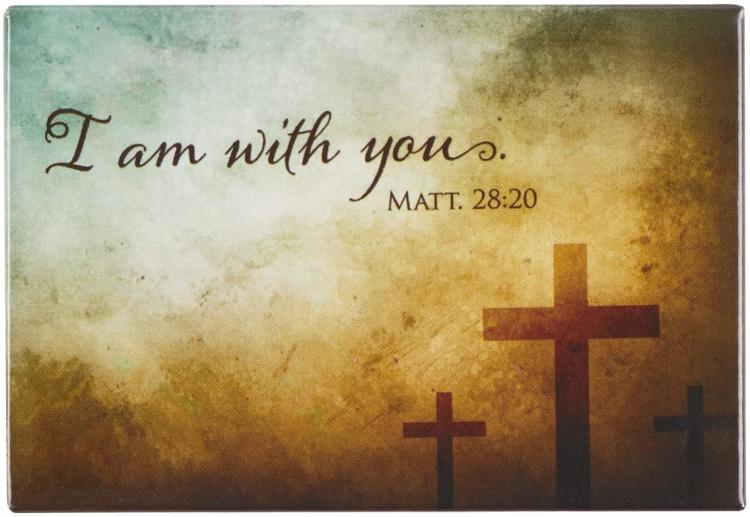 The I am With You Magnet is a strong reminder of Christ’s constant companionship through the Holy Spirit. A strong magnetic backing allows you to place this magnet on any magnetic surface to hold up pictures~ documents~ or notes whether it is a locker door~ metal door in your house~ refrigerator~ or magnetic whiteboard in your office or classroom.