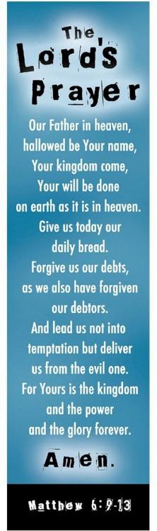 The prayer that Christ taught us to pray can be found in Matthew 6. This prayer is the sentiment printed on the bookmarks in The LORD‘s Prayer Blue Sunday School/Teacher Bookmark Set —an easily accessible guide to prayer.”